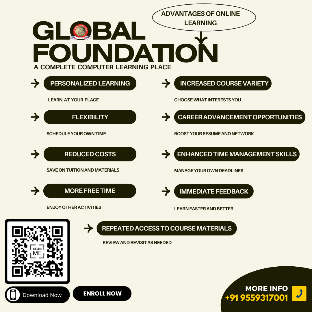 Global Foundation IT Center is an ISO and MSME registered computer training institute dedicated to delivering affordable and career-focused digital education. Established with a vision to bridge the gap between rural students and modern IT skills, we offer 50+ professional courses including DCA, ADCA, Tally, Photoshop, Python, and more..